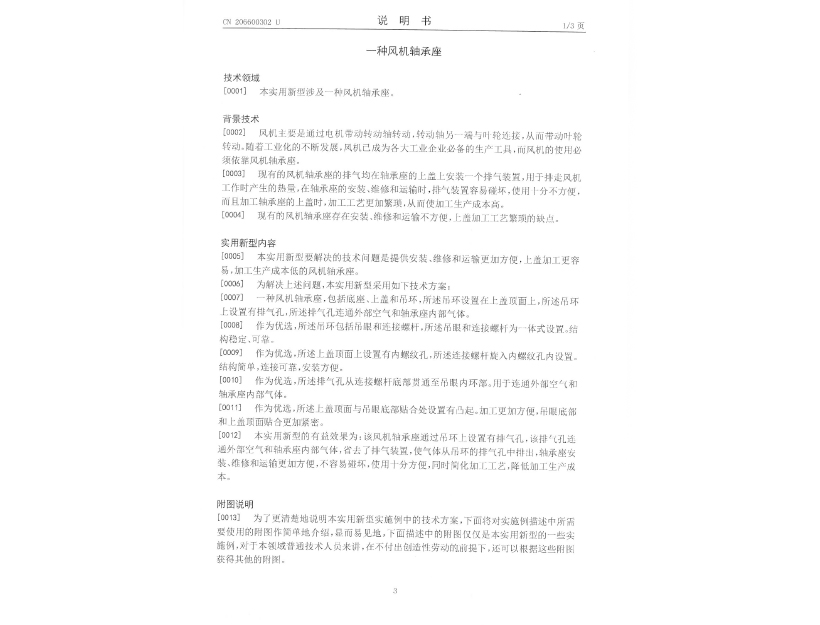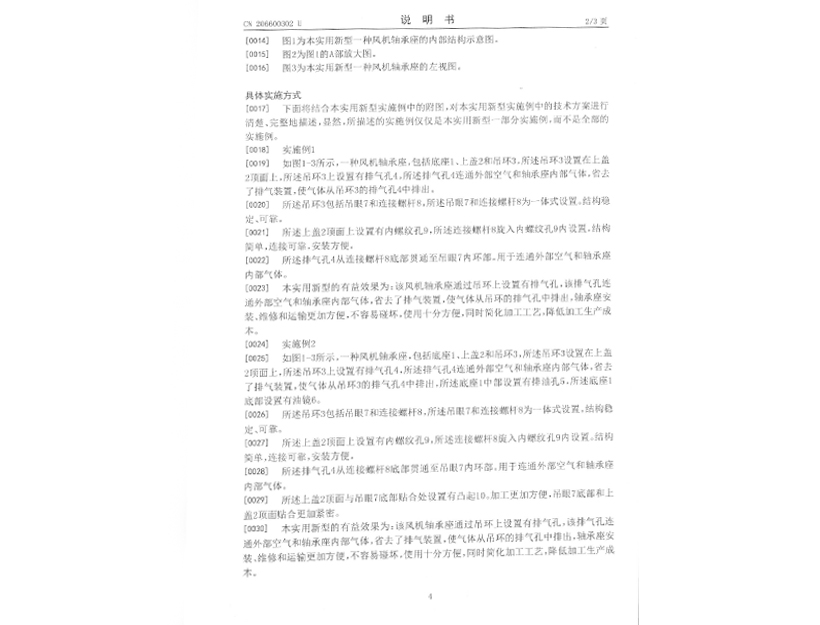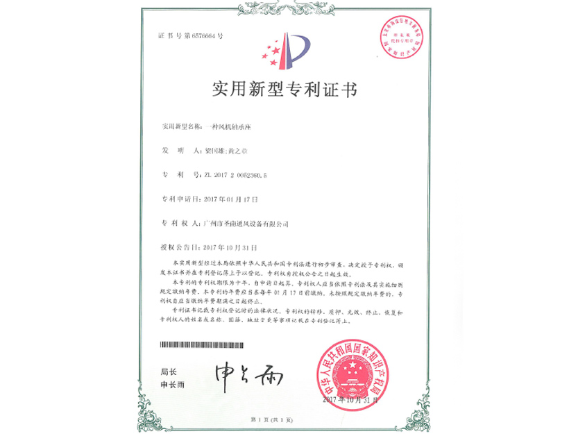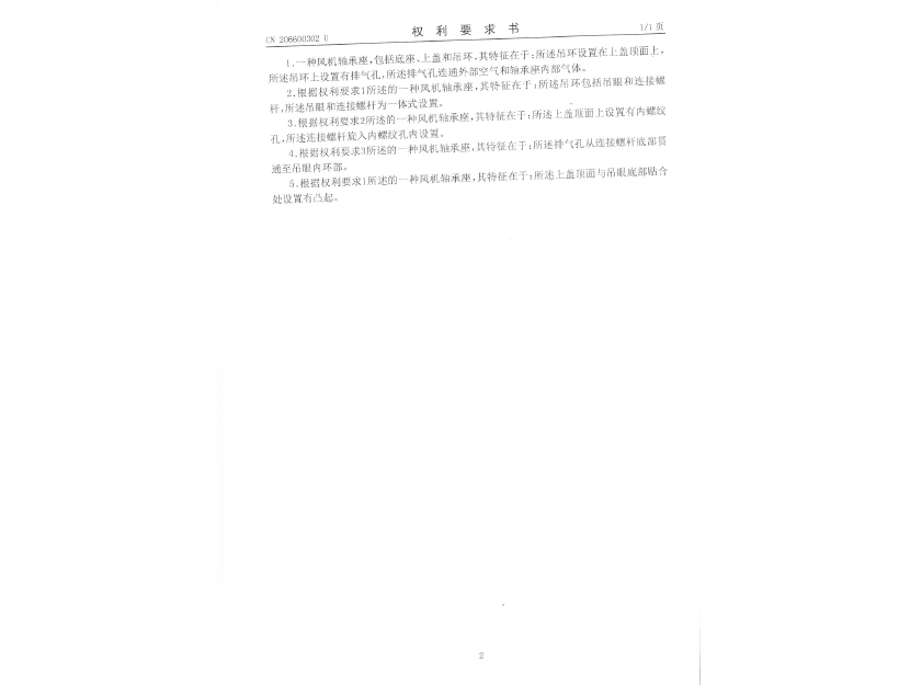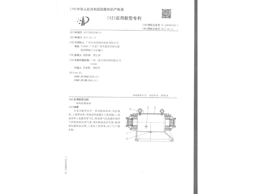 實用新型專利證書 一種風(fēng)機(jī)軸承座